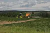 I sidehelling kan systemet overstyres fra traktoren for å motvirke g-kreftene som vil trekke sprøyta nedover.