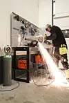 Men pass på, ikke press hardt. Hvis det begynner å gnistre, vil stålet bli blått. Puss heller flere ganger, og prøv deg fram litt og litt.