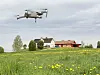 Høy avling gir positive utslag i klimakalkulatoren. Her er en drone i gang med avlingsmåling i Innlandet.