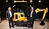 Lord Bramford og sønnen viser fram den elektriske gravemaskinen JCB 19C-1 E-tec. Foto: JCB