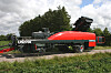Tørrgjødselvogn på høg ramme og med traktordekk